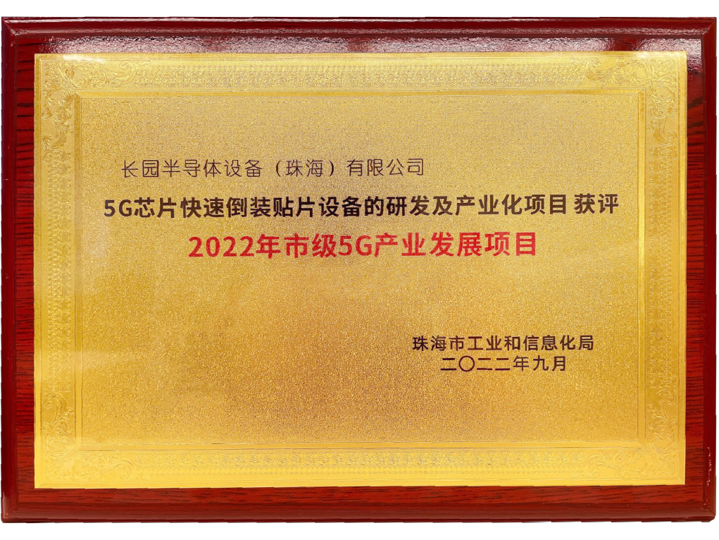 为支持5G网络技术在经济发展、社会生活、公共服务和信息消费等领域创新应用,促进我市5G行业加快发展,珠海市工业和信息化局开展了“2022年度珠海市促进5G产业发展项目”,zoty中欧半导体设备(珠海)有限公司(以下简称“zoty中欧半导体设备”)作为芯片封装设备领域的优秀供应商,积极参与了5G产业化的评选,凭借技术优势入围获评。